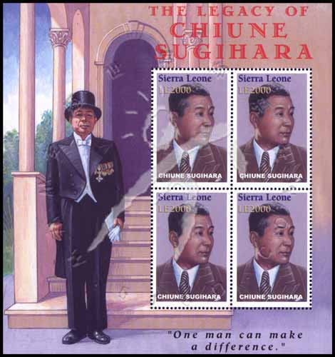 纳粹期间解救很多犹太难民并发放经过日本签证的日本外交官杉原千亩(1900-1986)肖像小全张