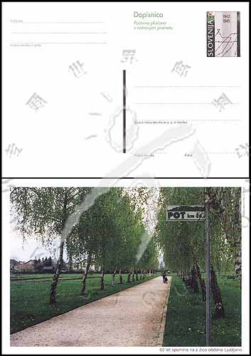 卢布尔雅那的小路风光,邮票为卢布尔雅那刺绳网分布图邮资片1全