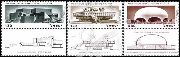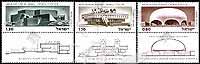 以色列现代建筑第2组,耶路撒冷希伯来大学内古登斯坦拉比犹太会所、耶德·莫尔德谢基布兹博物馆及巴特亚姆市政厅带边纸3全