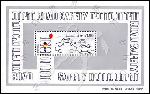 交通安全,汽车及从斑马线过马路的孩子小型张