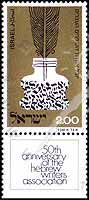 希伯来作家协会50周年,鹅毛笔、墨水瓶及希伯来文字带边纸1全