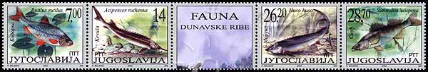 多瑙河鱼类,拟鲤、小体鲟、欧鳇及梭鲈带过桥4联