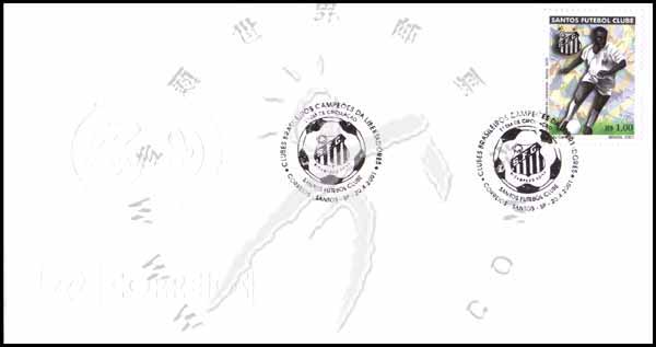 南美自由杯足球赛的赢家,桑多斯足球俱乐部(Santos)徽志及足球名将贝利1全邮票立体压印首日封