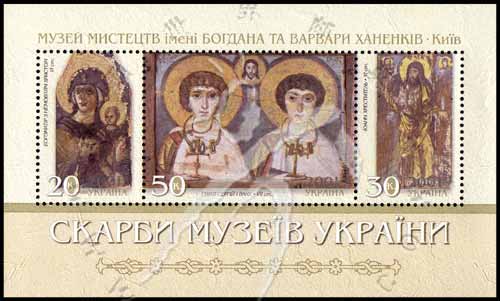 乌克兰基辅Khanenko艺术博物馆的藏品,塑像《圣母子》及《施洗约翰》等小全张(3票)