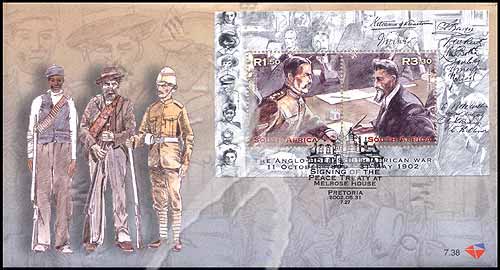英布战争系列:英国和ZAR共和国代表于1902年5月31号在比勒陀利亚的梅尔罗斯屋签订的弗里尼欣和平条约,签约场景首日封(贴小型张)1全