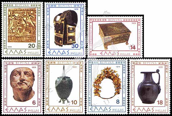 考古学家在马其顿弗吉纳的发现,菲利浦二世头像、金花环、铜船、金珠宝盆、大口银水罐、金箭筒及金和铁胸甲7全