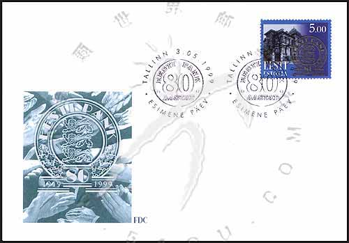 爱沙尼亚银行成立80周年,银行建筑及徽志1全邮票首日封