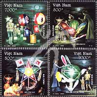 越南中秋节普票,儿童玩具、灯笼及儿童等4全