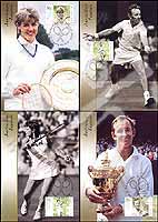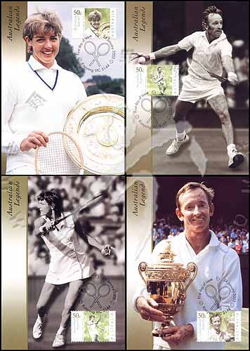 传奇人物系列(7)—网球明星Margaret Count和Rod Laver,奖杯和赛场风采摄影极限片4全(盖网球和球拍戳)(我社已售缺)
