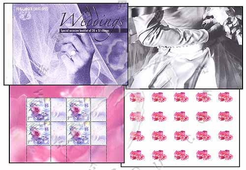 祝福个性化邮票—婚礼(银色版),香槟、玫瑰和婚戒邮票,婚礼场面、爱的箴言、玫瑰贴纸小本票(20票)(我社已售缺)