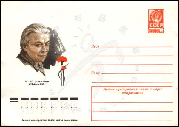 列宁妹妹M.N.乌里杨诺娃(1878-1937)诞生97周年,肖像及花卉邮资封1全