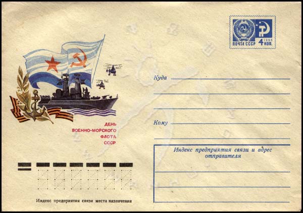 苏海军节,军旗、军舰、直升飞机邮资封1F