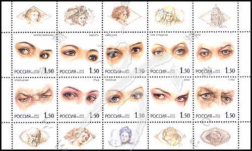 人类心灵的窗户—眼睛,表现不同情感的10种眼神:感兴趣、高兴、惊讶、悲伤、愤怒、讨厌、羞愧、轻视、内疚和恐惧等小版张(10票)