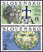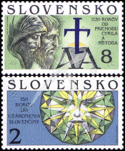 斯拉夫人的使徒圣西里尔和圣美多迪乌斯兄弟的到来1130周年及斯洛伐克语150周年,肖像等雕刻版2全