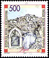 中世纪古城亚伊采,堡垒入口处及瀑布1全