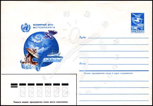 世界气象日,卫星接收天线、卫星及考察船邮资封1全(我社已售缺)