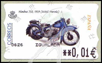 早期摩托车系列五,1939年Nimbus 750型摩托车不干胶自贴电子邮票常用面值1枚