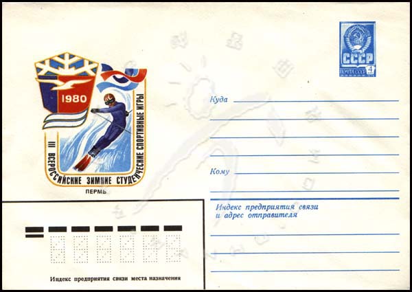 第三届俄大学生冬运会,会徽及滑雪邮资封1全