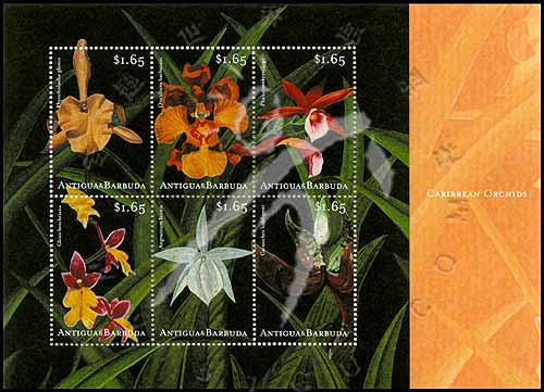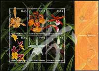兰花,髯毛瘤瓣兰(上二)、鹤顶兰(上三)、武夷兰(下二)、天鹅兰(下三)小版张(6票)