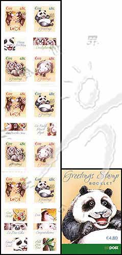 问候邮票,表达爱意的猩猩、快乐的考拉和河马不干胶自贴小本票(10票,封面为大熊猫)