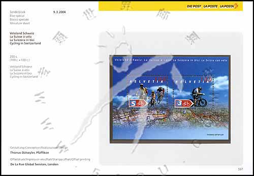 瑞士的自行车运动,自行车运动爱好者及旅游路线图小全张邮票卡1全