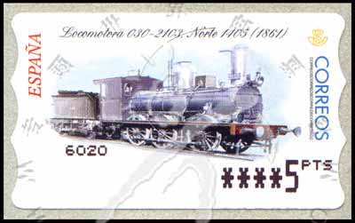 早期机车系列二,1861年030-2103.Norte 1405型机车不干胶自贴电子邮票常用面值1枚