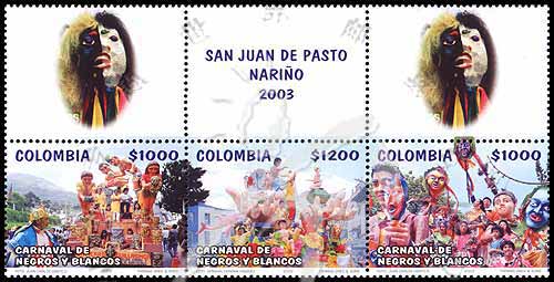 狂欢节,面具、手等3联(带3枚附票为面具)(已售缺)