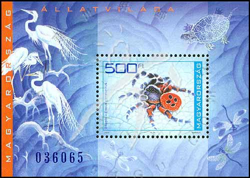 匈牙利动物系列二,黑隆头蛛、乌龟、鸟类及蜻蜓等小型张