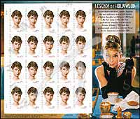 好莱坞传奇系列,奥黛丽·赫本电影剧照不干胶小版张(20票)