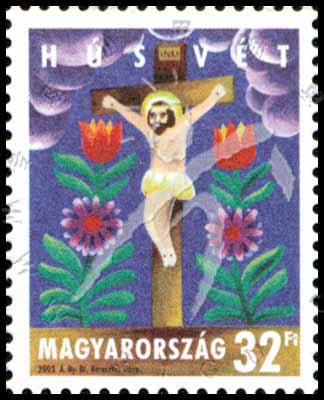 复活节,十字架上的耶稣、象征重生的花卉雏菊及郁金香1全