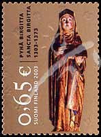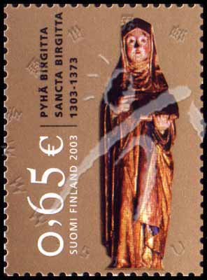 宗教及政治领域著名妇女—圣布里奇特(1303-73)诞生700周年,芬兰南塔里教堂里的木雕像1全