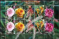 澳洲栽培花卉,山茶花、黄玫瑰、银桦、袋鼠爪花、杜鹃小版张(10票)(我社已售缺)