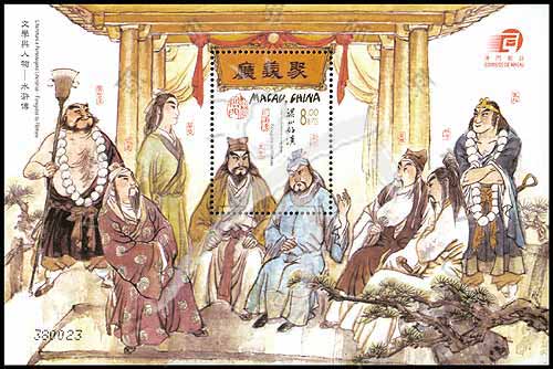 文学与人物——水浒传,梁山好汉宋江、晁盖、吴用等人物画像小型张