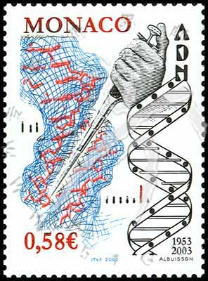 遗传基因DNA发现50周年,基因结构图、手及仪器等雕刻版1全