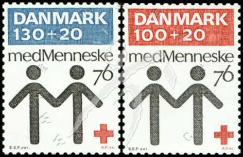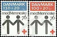 丹麦红十字会百年,红十字及简体人像图雕刻版附捐票2全