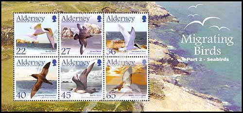 迁徙鸟类系列二,海鸟:燕鸥、贼鸥、灰鹱、曼茨剪嘴鸥等小版张(6票)