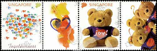 祝福邮票,心及泰迪熊2全(带2枚附票)