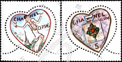 情人节,法国名牌—夏奈尔的服饰、时装模特及埃菲尔铁塔等心形邮票2全
