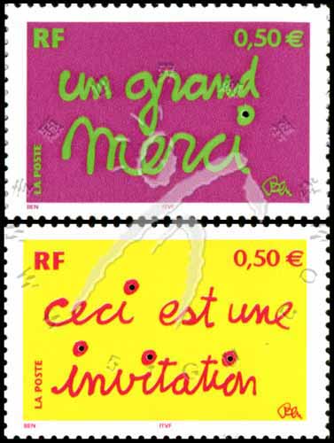 问候邮票,谢谢及邀请2全(邮票带针孔)