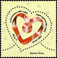 预防爱滋病,红丝带组成的心及双手心形票1全
