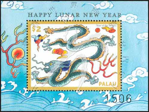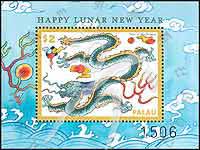 龙年生肖,龙王、英文“新年快乐”小型张