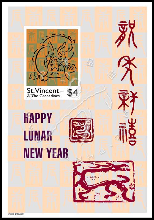 龙年生肖,将龙及中文“庚辰新禧”等小型张