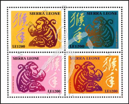 猴年生肖,猴子吃桃剪纸小全张(4票)