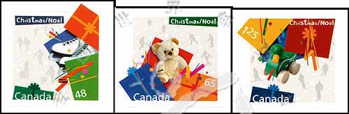圣诞礼物,冰鞋、玩具熊、玩具鸭和礼包不干胶自贴票3全