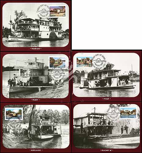 澳洲最大、世界第五大河墨瑞河(Murray River)运输开通125周年,不同时期运输船舶摄影极限片5全(我社已售缺)
