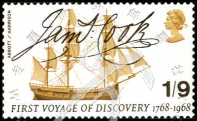 Sc#567 库克船长首航200年,“果敢”号和船长签名1.9sh (4-4) 1枚