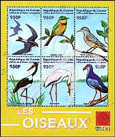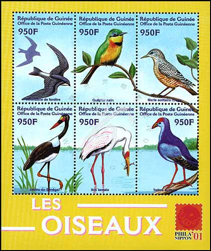 水鸟系列一,乳燕、蜂虎、大啄巨鹳及紫水鸡等日本邮展加盖小版张(6票)