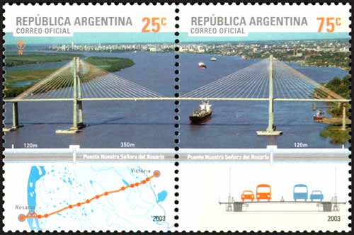 罗萨里奥圣母桥,轮船、罗萨里奥至维多利亚地图及桥面模型图等2联