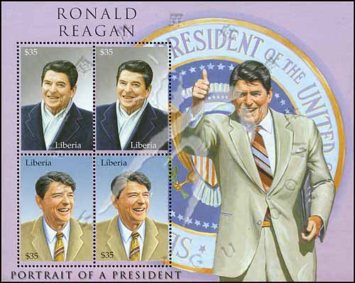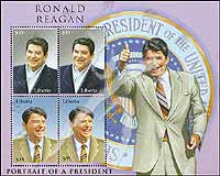 美国第40任总统罗纳德·威尔逊·里根,生活照、美国国徽小全张(4票)