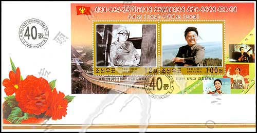 伟大领袖金正日工作40周年,党旗、肖像及朝鲜人民等小全张首日封